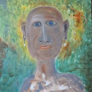 7、灵遁者油画作品《老人的恐惧》。尺寸:50×50cm