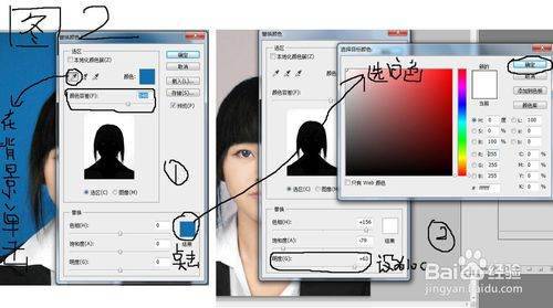 在photoshop里做照片怎么能把蓝色背景换成白色呀?