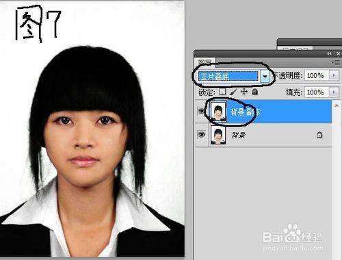 下边接着,复制背景图层,并把模式改为“正片叠底”,如图7所示.
