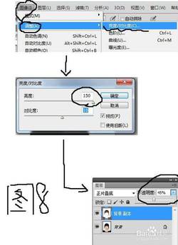 但是发现图像变得很黑了,没关系,接着调整,选择图像—调整—亮度/对比度,将亮度设为最大,对比度稍微变化一下就行,然后把图层的透明度设为30-60%,使图像显得自然一些,如图8所示,怎么样,OK不?最终效果图如图9所示,还不错吧?