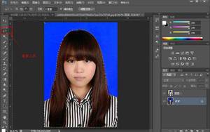 1.先将蓝色背景的照片在photoshop里打开。