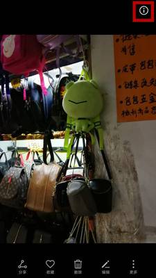 4、然后,进入图片浏览模式后,单击“!”。如图中右上角的按钮可查看照片的详细信息,如下图所示,然后进入下一步。