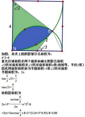 信息:正方形边长a=4,小圆半径r=2,大圆半径R=4
