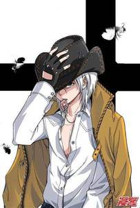 求一张动漫照片,图片里是个男的,他的动作很霸气,坐在椅子上,他的双手是插在一起的,详情见问题补充