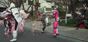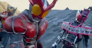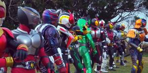 论拍皮套大战的次数,东大妈绝对比圆谷要多,自从《假面骑士Decade》以后,东大妈基本每年都会推出一部跟《超级战队》那边联动的皮套大战剧场版。但很遗憾的就是,这些皮套大战里始终没出现能让骑士粉为之尖叫的元素。