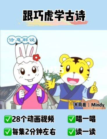 提取码: 9xiv让小朋友们学唐诗,爸妈们第一时间想到的是什么呢?是书本吗?最理想的应该是动画片。这里颜夕夕为大家分享一个巧虎学古诗的动画视频。巧虎对于小孩来说,可真是一个可靠的小伙伴。唱唱跳跳,能歌善舞。还能跟着见识许多有趣的动物和景观。