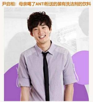 3.有的anti粉丝甚至会去伤害艺人的亲人,我记得以前有anti粉给尹启相的妈妈送了装有洗洁剂的饮料,他的妈妈喝下去以后出现严重呕吐,最后被送去洗胃,真的格外的丧心病狂……