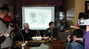 下边照片中崔永元和大骗子陈一文正在对媒体吹嘘他们发现了转基因大豆中的“不明病原体”,据他们说这是造成我国5000万妇女早产、流产的元凶。