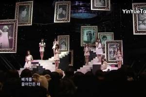 求一个韩国歌曲,舞台是女生从楼梯上下来穿着红色裙子下来然后有一堆人伴舞,我记得大家还说她表情很魅