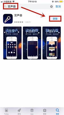 3、在【App Store】的顶部输入【变声器】后,在应用程序列表下选择【获取】功能。