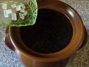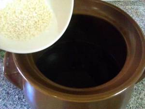 取汁与淘洗干净的粳米和薏米,一同入锅煮成粥,加入红糖调味即可