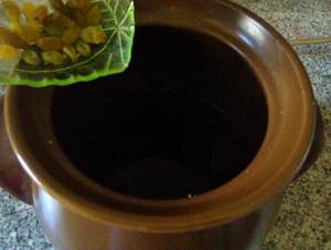 将赤小豆、薏米淘洗干净后,放入砂锅加清水适量浸泡15分钟,