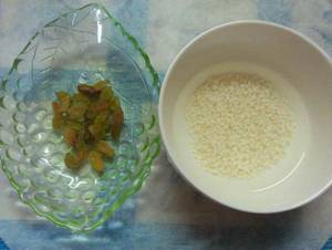辅料:糯米15g、黑米15g、葡萄干适量、冰糖适量