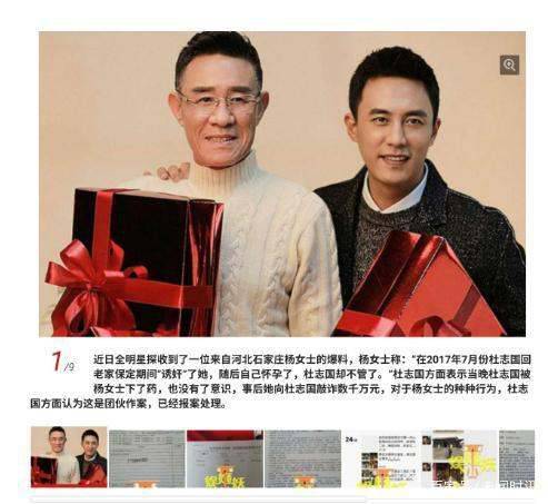 2018年1月,一位名叫杨淑芳的45岁中年妇女向媒体爆料,声称自己受到了著名演员杜志国的"诱奸"。