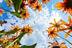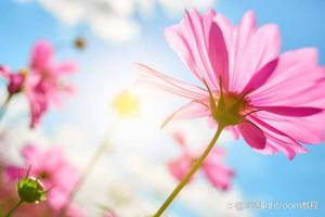 这需要改变拍摄角度,采用仰视的角度拍摄,以蓝色的天空作为画面的背景,表现出花朵“高大挺拔”的形象。