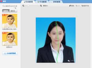 3、用笔从头顶由上到下画一条线,如图所示,实现抠图,点击完成抠图按钮。