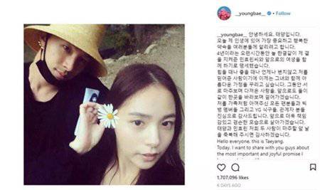 两人是因为合作拍摄MV从而相识,随即就坠入爱河,即使在交往的4年终小情侣也十分的低调,太阳在自己的主页这样写道“我想和大家分享,我一生中最重要也最喜悦的承诺。”并感谢闵孝琳四年来的陪伴,“那些好与不好的时光,她都相信我,并且陪伴我一起走过。”