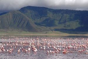 恩戈罗恩戈罗火山口向上看就是一个巨型洞口,朝上开放,洞壁周围有瀑布直流至洞底下的平原,再蜿蜒流向平原中间的矿物营养丰富的马里亚拉湖,湖中水草丰美,是飞越亚欧大陆,前往非洲越冬鸟类的丰盛粮仓。
