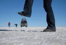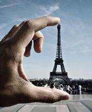 4、一个人站在远方,而靠近尽头的人抬起一只手,听拍照者的指令来调整位置,给人一种站在手上的感觉。