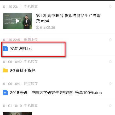 5、下载完毕后在云盘的传输页面中即可看到下载完成的文件,单击该文件即可打开下载的文件。