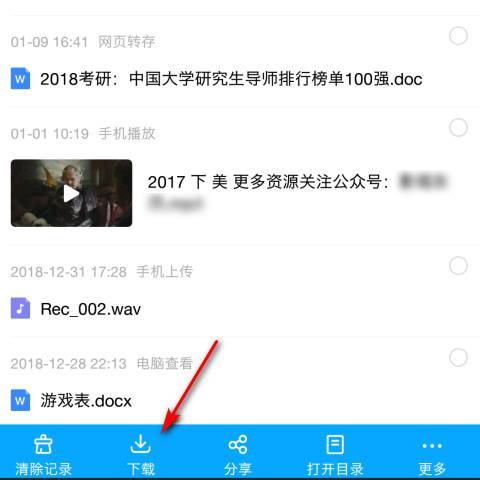 3.下载完毕后点击该文件旁的圆点图标,选择底端保存至相册,