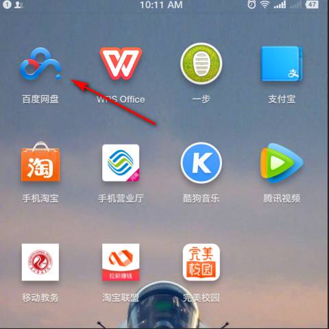 1、在桌面中找到百度云盘APP,点击百度云盘APP进入至云盘主页面中。