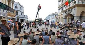 拍摄中的剧组:一般是找到适合的演员之后,拉人到影视基地或者影视城进行取景拍摄。