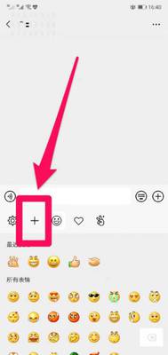 4、进入到微信的表情界面上,选择“放大镜”搜索微信红包。