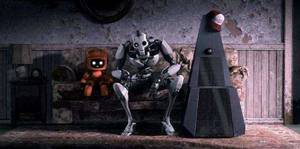 还有就是一群机器人去已经灭亡了的人的世界旅游的那一集,我印象比较深。首先这一集隐藏了很多笑点,然后那个小机器人很萌,然后大机器人其中有一个肯定是黑人,因为他们有独特的rap技能,说起话来一套一套的。最重要的是他们通过很简单的一个故事反映出了一些很深的含义。比方说我们要保护环境,如果不保护环境的话,若干年后,人类世界就会是那样一个下场,一片虚无。