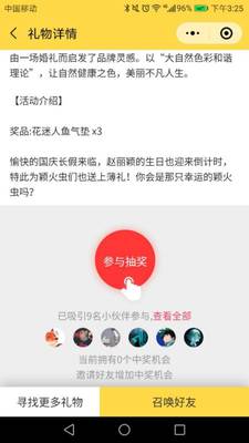 星礼说是款抽奖类小程序,界面相对比较简洁清爽。首页能直接看到他人发布的抽奖活动,能直接点进去参与,流程较为简单。