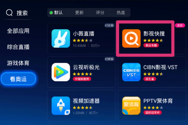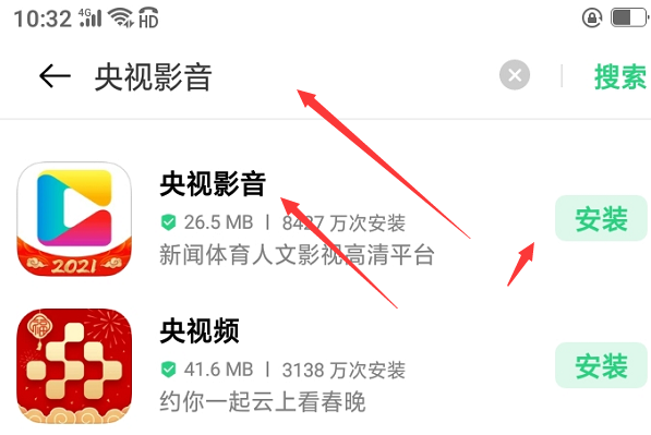 3、在搜索页面中输入央视影音,找到该软件以后点击安装按钮。