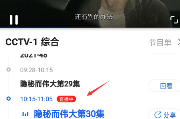 9、在手机的顶部即可看到已经通过央视影音在观看当前的直播节目了。