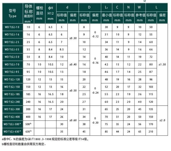开口铜鼻子的国标号是多少?例如规定型号OT-100A的铜鼻子标准的国标号