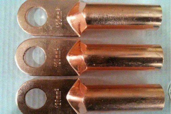 大导体截面的铜鼻子,考虑到压接的可靠性,接口都是管状的,执行标准是GB/T14315-2008。标准中不以电流为规格,而是按照导体的标称截面为规格,主要是铜鼻子与电线电缆的导体截面相匹配,便于导体插入压接。