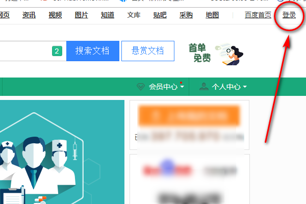 2、登录账号后,进入到点击【文库】进入到百度文库首页,在百度文库首页的右侧,找到导航上的【个人中心】,并且点击进入到个人中心;见下图红色部分: