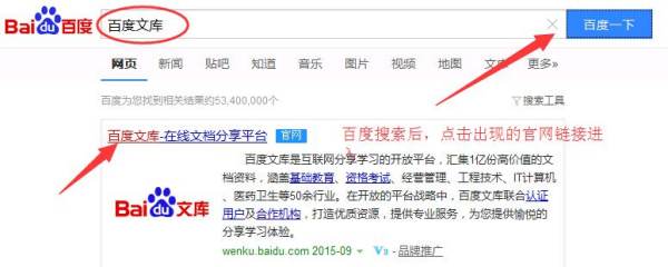 3、之后在百度的搜索框中输入百度文库,并点击打开搜索结果中的百度文库官网。