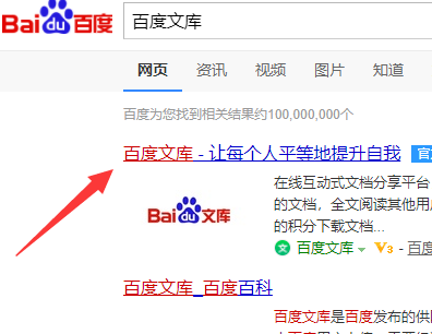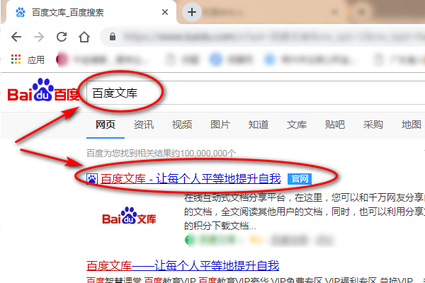 1、进入浏览器在百度网页中搜索”百度文库“,进入百度文库官网;