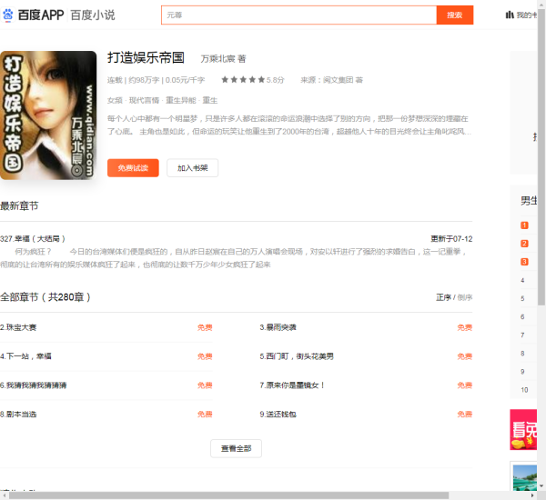 《重生之打造娱乐帝国》百度网盘txt最新全集下载: