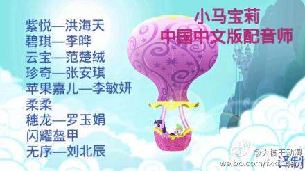 中国国语配音[编辑] 上海大模王动漫科技有限公司于2013年9月14日公布了配音演员资料[13]。 洪海天 饰 紫悦 李晔 饰 碧琪 范楚绒 饰 云宝 张安琪 饰 珍奇 李敏妍 饰 苹果嘉儿 罗玉婷 饰 柔柔、穗龙 (注:原文“罗玉娟”系笔误) 刘北辰 饰 闪耀盔甲、无序小马宝莉国语配音演员是谁?