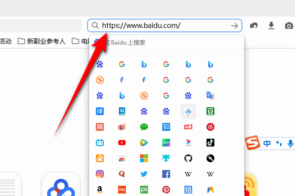 打开浏览器,在地址栏输入网址,打开百度的首页。