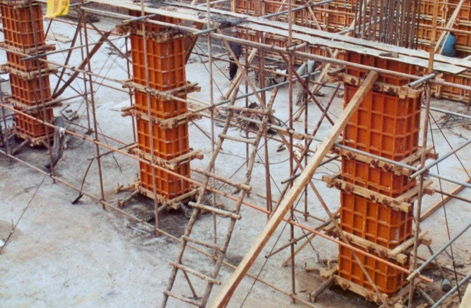 2、安装柱模时,应随时支撑回定,防止倾覆;支设高度在3米以上的柱模板,四周应设斜撑,并应设立操作平台,低于3米的可用马凳操作。
