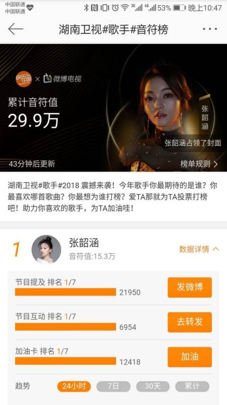 应该有很多路人也投了韶涵,纯拼粉丝不会第一的