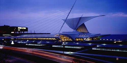 西班牙建筑师卡拉特拉瓦是世界上最著名的创新建筑师之一,可以说是建筑仿生学的集大成者,被称为“建筑师中的诗人”。密尔沃基市艺术馆同样体现了他血液里那种西班牙人特有的奇异想像力。