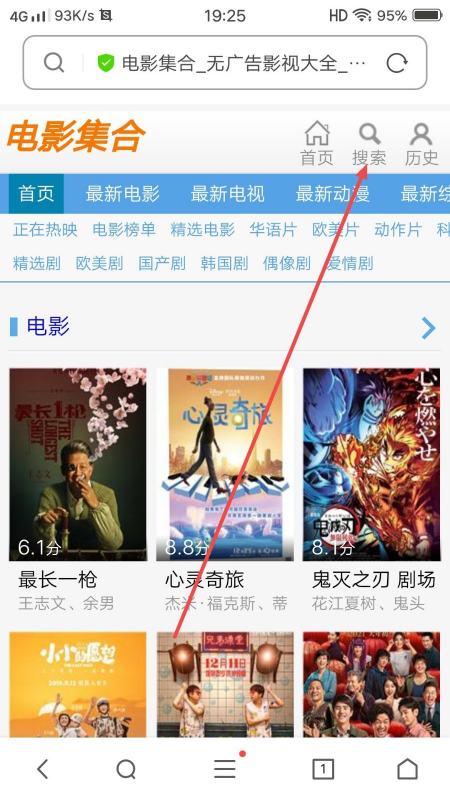 第四步、进入首页电影集合官网以后,点击搜索框。
