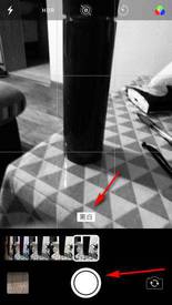 四、当滑动到最右侧时,此时的模式就位黑白照片的模式,按下最下方中间的拍照按钮,拍出来的照片即为黑白照片。