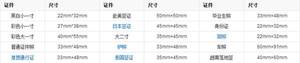 (3)证件照的常规尺寸如下: