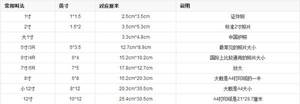 3、大小尺寸对照如下: