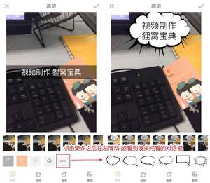 5.除了添加有底色的文字之外,还可以点击三个点的图标往左边滑动可以看到很多好看的对话框哦,从里面选择喜欢的对话框,气泡等样式。