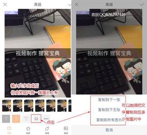 4.文字输入完成,可以按住文字部分移动位置。快手中添加文字时,是把视频分成一张一张的图片,而添加的文字只添加到你所在的其中一张图片上,那么想要添加到多张图片中,文字显示时间长一点的话,就可以点击选择把文字复制到“复制到下一张”、“复制到下五张”或者是“复制到所有图片”,小编想要文字显示久一点,所以选择了复制到所有图片。