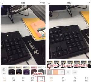 2.快手拍摄视频时,只能拍摄最长8秒的视频,视频拍摄完成后,点击“高级”编辑功能,进入发哦高级编辑功能后,你可以选择添加文字,可以添加三种不同底色的文字,选择其中一个添加后。